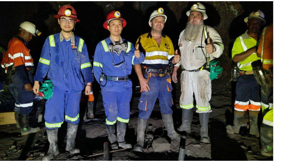 由波尔项目公司承建的JAMA矿-450m中段与胶带斜井精准贯通,贯通长度为6693米,为该矿目前最长贯通线路。贯通实现了JAMA矿井下通往地表的五个出口互相联通,改善了建设期的通风问题,为井下安全生产、人员、材料和无轨设备的运输提供了保障,为确保施工安全和进度奠定了基础。